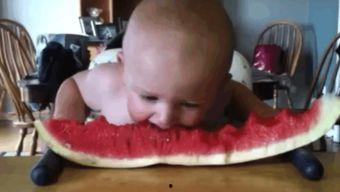 视频里的萌宝,吃瓜的样子好可爱